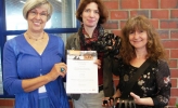 Die ehemalige didaktische Leiterin der Schule Ute Neumann, die Kulturbeauftragte Katrin Block und die Kulturagentin Ariane Schön nahmen den Preis entgegen.