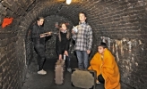 Schüler bei der Erkundung des Luftschutzstollens