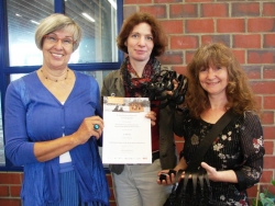 Die ehemalige didaktische Leiterin der Schule Ute Neumann, die Kulturbeauftragte Katrin Block und die Kulturagentin Ariane Schön nahmen den Preis entgegen.