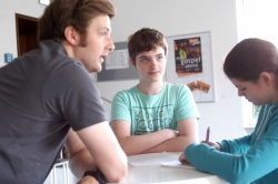 Pero und Julia im Interview mit ihrem Kulturbeauftragten Marc Bethke. Foto: Ayselin Lange