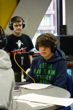 Bei den jüngeren Schülern stand „Respekt“ im Mittelpunkt – sie entwickelten z.B. in einem Theater und Akrobatik-Workshop eine „Respektmaschine“. Im 8. Jahrgang entstanden Film-, Hörspiel- und Radiobeiträge zum Thema „Flucht und Asyl“, Neuntklässler rappten zu „Alles was mir heilig ist“ und die 10er befassten sich mit „religiöser Vielfalt und Toleranz“. Barbara Kemmler vom Kooperationspartner „Cactus Junges Theater“, die die Kontakte zu zahlreichen Theater- Tanz und Medienpädagogen hergestellt hatte, zeigte sich beeindruckt von der intensiven Mitarbeit der Jugendlichen, die mit ihren Lehrerinnen und Lehrern einen besonderen Tag in besonderer Atmosphäre erlebten. Neben Cactus Junges Theater waren auch die Jugendkunstschule, die Radiowerkstatt der Volkshochschule, das Medienzentrum Bennohaus sowie der Sportverein Westfalia Kinderhaus und das Performancekollektiv Fetter Fisch Kulturpartner am Projekttag beteiligt. Im Vorfeld konnte das Kollegium der Waldschule Kinderhaus bereits in künstlerischen Workshops verschiedene künstlerische Formen der Annäherung an das Thema des Projekttages praktisch kennenlernen.