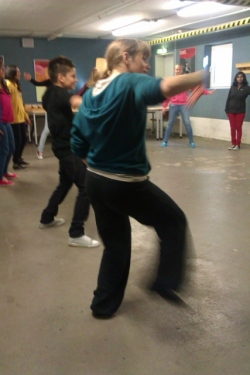 Die Tänzerin Eloisa Mirabassi im KRESCH-Kurs in der Gesamtschule Weierheide in Oberhausen