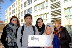 Bei bestem Wetter nahmen die Vertreter der Thomas-Mann-Schule in Erfurt am 05. März 2013 ihr Kulturagenten-Schild in Empfang. Begleitet wurde die Übergabe durch einen offiziellen Pressetermin.