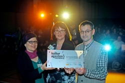 Die Friedrich-Ebert-Schule kann sich über ihr neues Kulturagenten-Schild freuen. Im Rahmen des Tags der offenen Tür der Schule am 14. Februrar 2013 wurde ihnen das Schild überreicht.