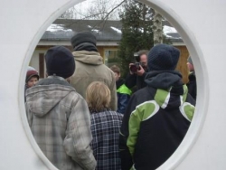 Plötzlich stand am Freitag den 22.03.2013 vor den Osterferien der Künstler Robert Krainhöfner mit seiner Schauschmiede mitten auf dem Schulhof der Staatlichen Regelschule Schloßvippach und lud alle Schülerinnen und Schüler sowie Lehrerinnen und Lehrer zur Erforschung seiner Schmiedearbeiten ein. Bis über das Schuljahr hinaus werden nun jeder Schüler und jede Schülerin sowie alle Lehrerinnen und Lehrer eigene "Stahlzeichnungen" schmieden, welche dann zu einem großen Ganzen verwachsen sollen. In unmittelbarer Nachbarschaft zur Schule befindet sich das Haus "Zur alten Schmiede". Vielleicht findet die endgültige Skulptur dazwischen einen ehrbaren Platz im Dorf? Es bleibt spannend!